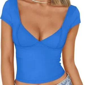 NWT TRENDY QUEEN BLUE MEDIUM TOP Sexy Fit V Neck Short Sleeve