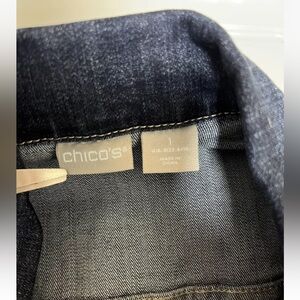 Chico’s long jean jacket chore coat embroidered denim medium size 8-10