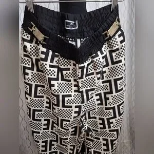 Elevate your wardrobe with these chic black and white patterned pants. Perfect for any occasion, these pants offer both comfort and style.