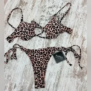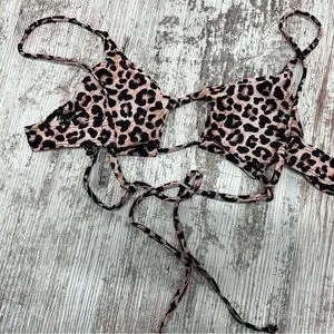 Tags removed. Never worn, the top didn’t fit. Super cute. Stylish leopard print bikini. Features adjustable straps. Perfect for beach days.