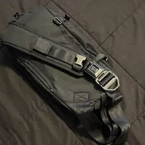 Limited edition: no longer made or sold. Beautiful, tactical, sturdy, never-used 22X Kadet Sling bag from Chrome Industries. Color: Black Chrome. Part messenger, part sling. Comes with seatbelt buckle and quick zip access for everyday use. 9L volume. 7.75H x 16.5W x 3.5D. Made of 1050D nylon with PU backing. Lined in 150D polyester.