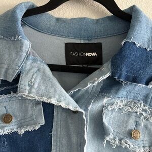 Fashion Nova Denim Patchwork Cropped Jacket (1X)