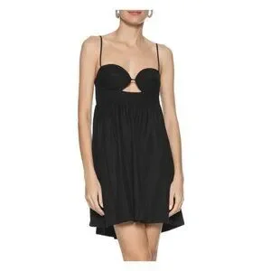 NWOT Farm Rio Linen Blend Black Sleeveless Mini Dress Size M
