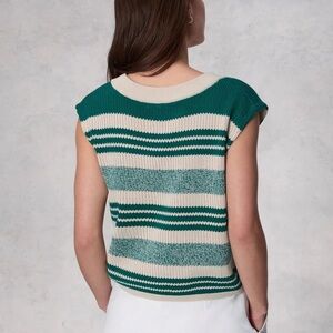 The Cyrus. Detailed with a ribbed V-neckline, our easy-fitting vest is knit with stripes of blended cotton for an ultra-cozy layer.