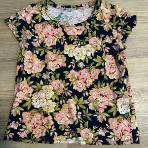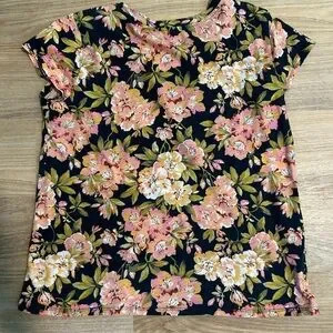 LOFT Vintage Soft Floral Top - Pink and Yellow on Navy Blue