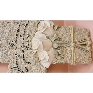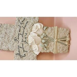 2005 Inspiro Decorative Religious Wall Cross with White Roses and Scripture 9'