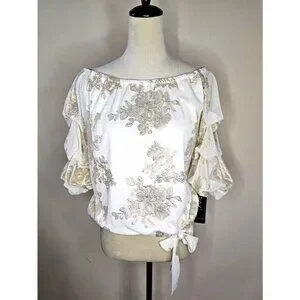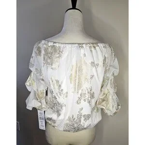 MSK Metallic Lantern-Sleeve Off-The-Shoulder Top Size PL Blouse Fancy Wedding
