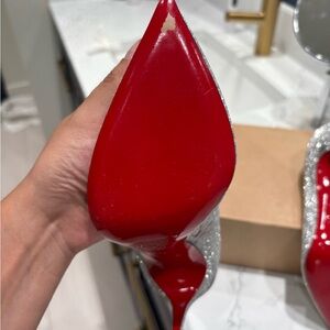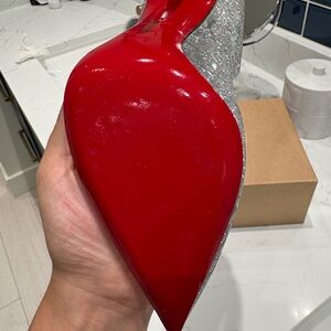 Hardly used, most of the peeling was me taking off the protection and the cushion inside the shoe. Fit me alittle to snug. Hot chick 100 specchio glitter size 37