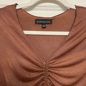 Electrica Brown sheer long sleeve crop top adjustable ruched front with ties