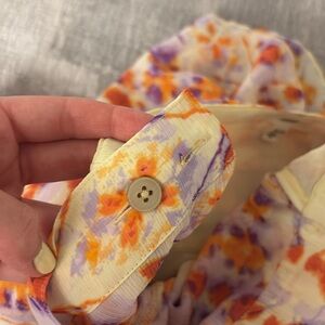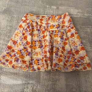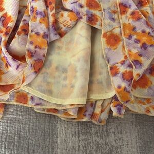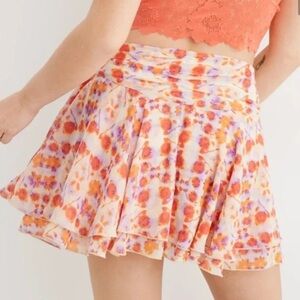 Aerie Wrap Tie Dye Mini Skirt — Cream Skirt with Orange/Purple Tie Dye Pattern