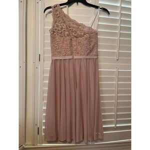 Davids Bridal one shoulder lace bodice dress