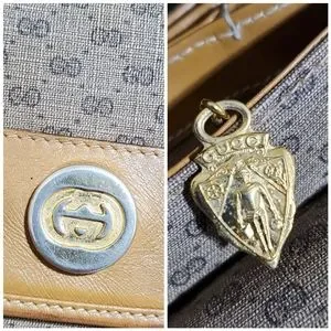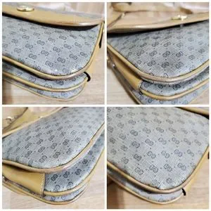 This authentic GUCCI Vintage Micro GG Canvas Shoulder/Crossbody Bag Beige is in it's pre-owned condition. The exterior coated canvas is clean. Interior is clean. The base edges shows rubbing wear.