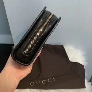 ❌SOLD❌Authentic Gucci all brown leather large clutch / wristlet w dustbag