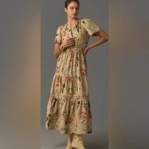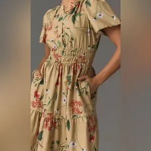 Chic maxi dress with floral design. Features short sleeves and gathered waist. Ideal for stylish outings.