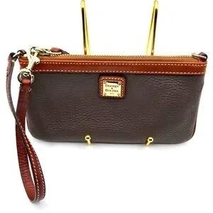DOONEY & BOURKE Pebbled Leather Wristlet Taupe Large Size