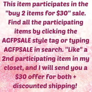 💖 To find all items participating in the 2/$30 sale, type AGFPSALE in the search bar on Poshmark or click the AGFPSALE style tag on this listing
