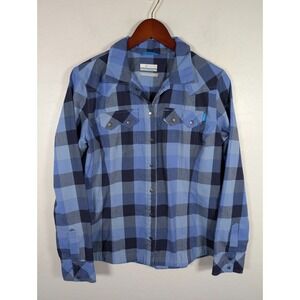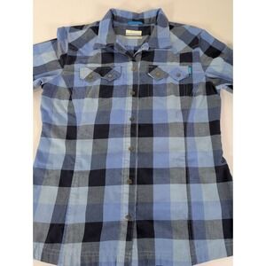 Columbia Blouse Womens Medium Shirt Blue Plaid Pockets Long Sleeve Outdoor Snap Buttons