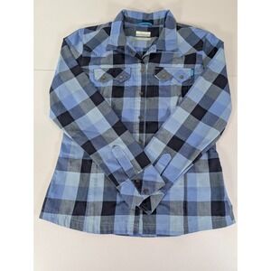 Columbia Blouse Womens Medium Shirt Blue Plaid Pockets Long Sleeve Outdoor