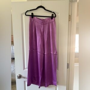 Satin pants, creased from hanger but can be ironed or steamed, size medium, flowy, high waisted
