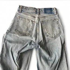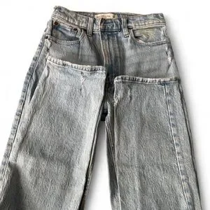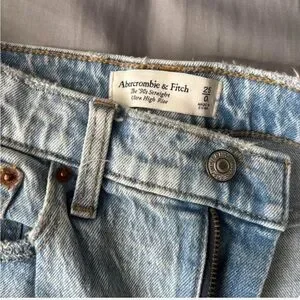 Abercrombie and Fitch 90s straight ultra high rise jeans. Fit great and super comfortable for good quality denim. Length is shown.
