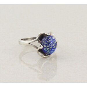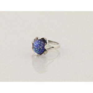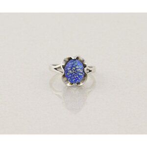 Sterling Silver Blue Foil Opal Ring Size 7 1/4