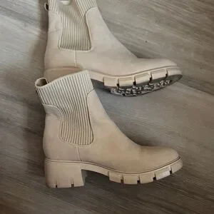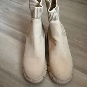 Step out in style with these chic cream ankle boots. Perfect for any occasion, these boots offer both comfort and elegance.