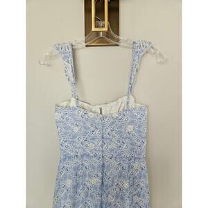Karina Grimaldi Blue Irma Eyelet Detail Floral Print Midi Dress Size Small