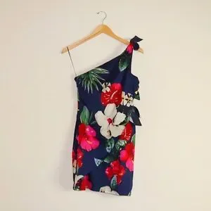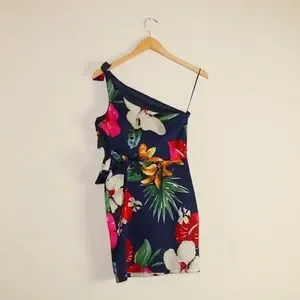 Zara Tropical Floral Side Tie One Shoulder Dress