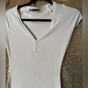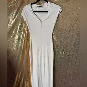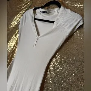Zara Cream Cap Sleeve Midi Dress