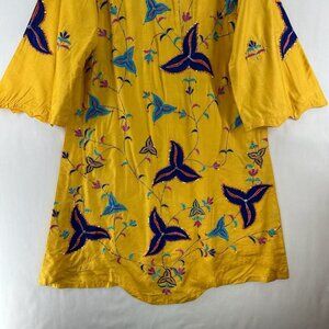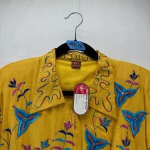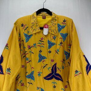 India Home Textile Dress Womens Sz M Golden Yellow Long Sleeve Lined Embroidered