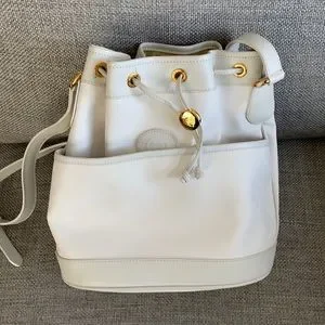 Elegant Gucci crossbody bag. Features white leather with gold accents. Stylish and versatile.