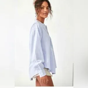 NEW Free People/We the Free Edge Washed Pin Striped Boho Style Shirt