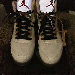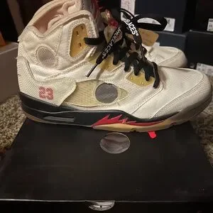 Off White Air Jordan 5s that I don’t wear anymore. I wore them a decent amount but kept them in great shape. Have the original box and packaging with the extra laces. Size 11. Open to offers can ship the same day.