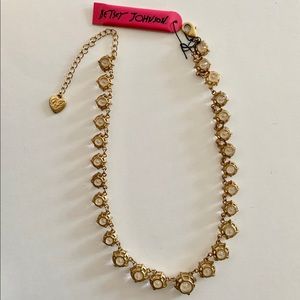 Vintage Rare Betsey Johnson Crystal Stone Matte Gold Plating Statement Necklace