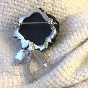 Goth black rose brooch to uniquely adorn a ruffled blouse or add a bit of sparkle to a silky scarf or lapel of any colour.