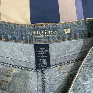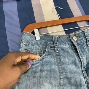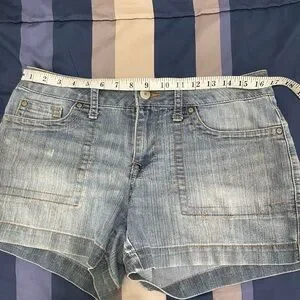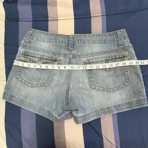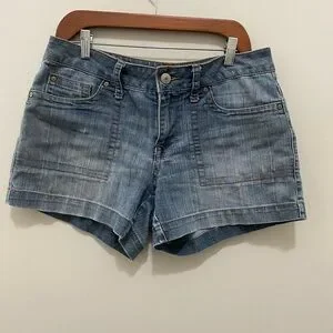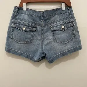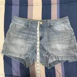 Casual light blue jean shorts. Perfect for everyday style. Features classic design.