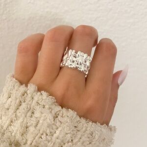 925 Sterling Silver Chunky Bold Statement Ring Thick Wide Ring Woven Ring Band