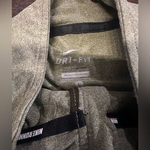 Stay comfortable and stylish with the Nike Men's Olive Green Jacket. Perfect for any casual outing or workout session.