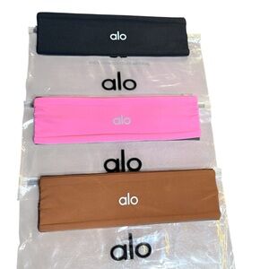 Trio of ALO Yoga headbands. Perfect for workouts. Includes black, pink, and brown colors.🖤🤎🩷 I accept reasonable offers🖤🤎🩷 The headbands are super stretchy and beautiful.