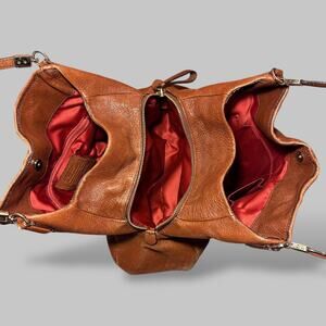 Note: This large Coach hobo bag features a timeless slouchy design in a warm brown pebbled leather with red satin lining. Ideal for everyday wear with room for all your essentials. Please review all photos for condition and color details, as tones may vary due to lighting.