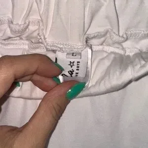 Stylish white track pants. Comfortable and versatile. Perfect for casual wear. So cute still white white. I just don’t reach for her.