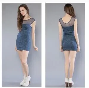 Free People Starlight Bodycon Mesh Mini Teal Gold Dress.