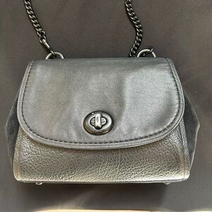 COACH Faye Crossbody Purse Bag All Black Pebbled Leather Flap F1880-F22349