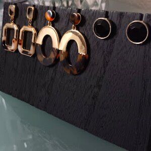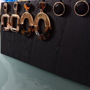ANN TAYLOR 3pc LOT Geometric Brown & Black Tortoise Drop+Black Crystal Earrings