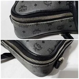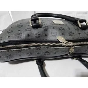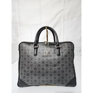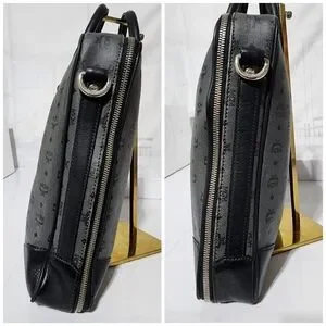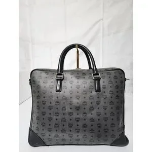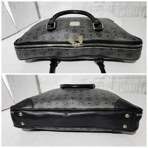 This authentic MCM Visetos Laptop Bag Grey/Black. The exterior is clean and beautiful. Interior is clean. Silver hardware shows some scratches to it. There is no long strapi will include a generic long strap.