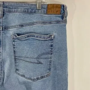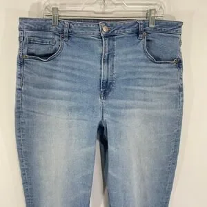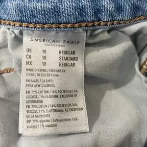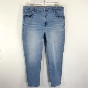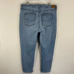 American Eagle Mom Jeans High Waisted Light Wash Denim Comfort Stretch 18