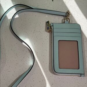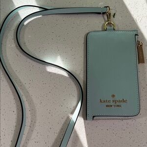 Elegant mint wallet by Kate Spade. Features gold hardware and a lanyard strap. Never Used - Excellent Newer Condition