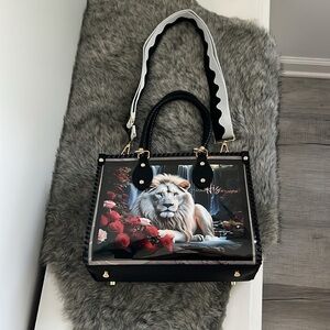 *SOLD* CHiP Bags modern style black white blue leopard lion roses tote purse
