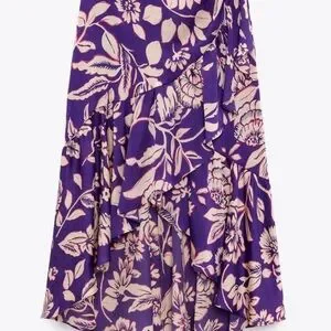 Zara Purple Floral High - Lo Midi Skirt XS