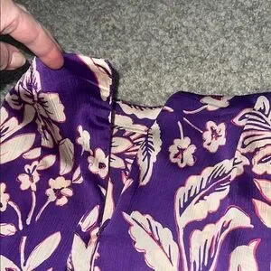Chic purple skirt with floral pattern. Features stylish ruffle accents. Ideal for a fashionable look. Size XS.